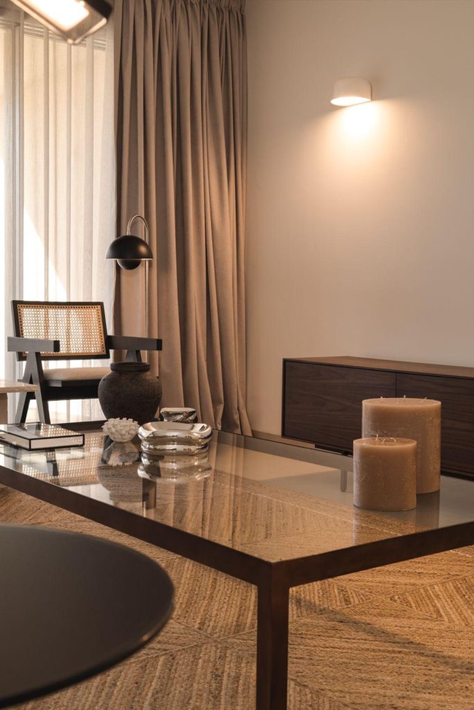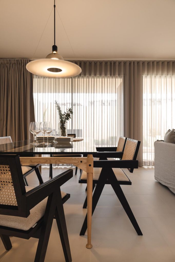 The interiors combine wood, natural fabrics and carefully selected design pieces, achieving a balance between contemporary elegance and relaxed comfort, perfectly suited to the Algarve lifestyle.