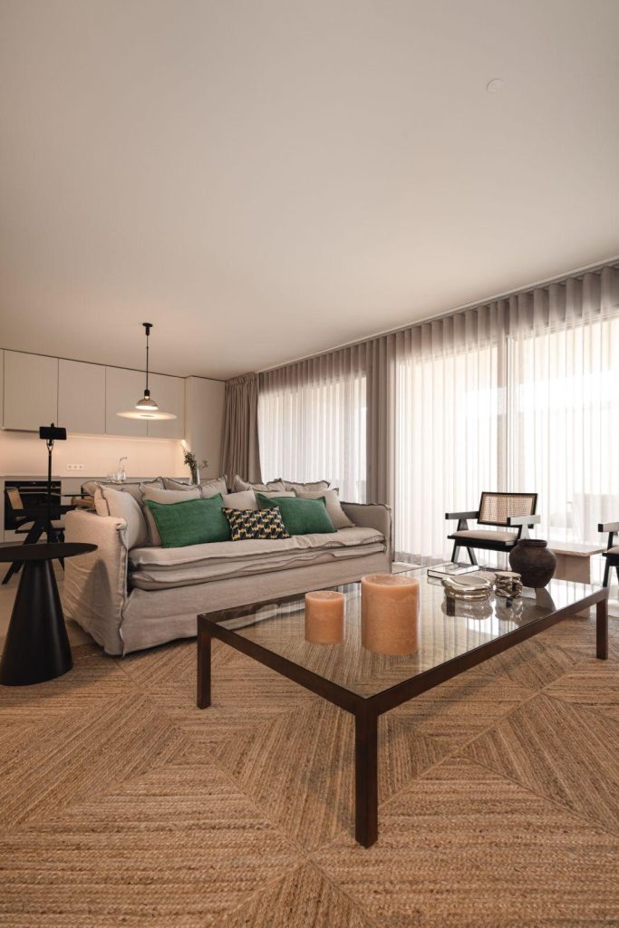 This elegant apartment in the Algarve was designed to offer an experience of comfort, tranquility and sophistication. The interior architecture emphasizes clean lines, natural materials and a palette of soft tones that create a serene and welcoming atmosphere.